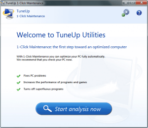 At first launch, you will see TuneUp 1-Click Maintenance window with a big “Start Analysis Now” button.