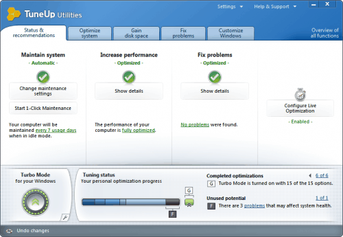 TuneUp Utilities 2011 features a Tuning Status indicator that gives you a quick overview of the optimizations that have been performed, and the amount of optimization that is still possible.